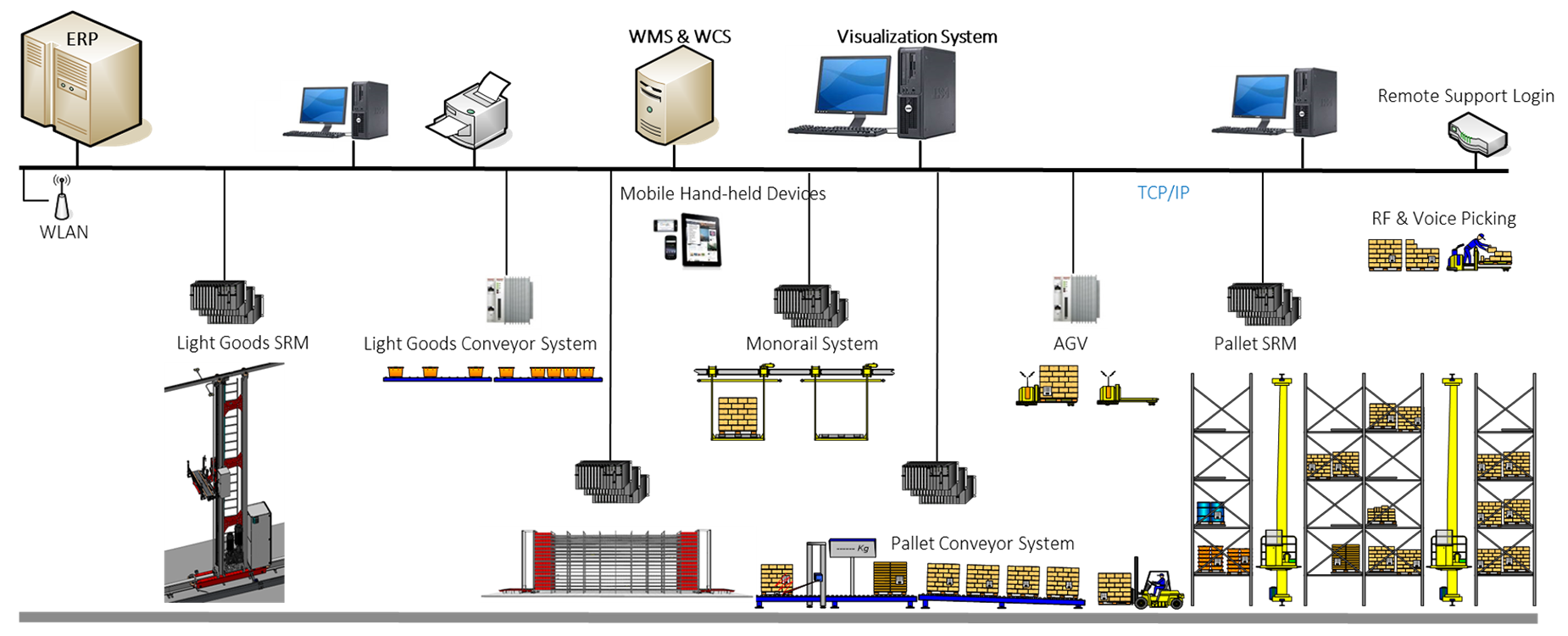 Ho Lao provides fully integrated automation systems—from WMS/WCS software to conveyors, AGVs, SRMs, and picking technologies with interfaces to the customer ERP system.